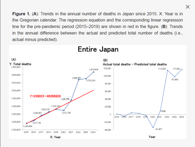 Data from a scientific study supports the general premise of a very significant increase in deaths in Japan…