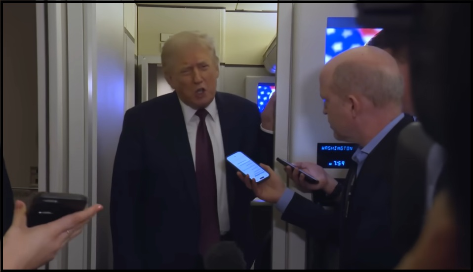 President Trump gives a rather lengthy impromptu press availability aboard Airforce One flying to Joint Base Andrews.