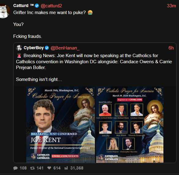 The whole Tucker Candace. Bannon, Kent MTG thing is so seedy now. It so obvious. Almost clownish now.