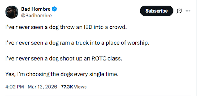 If you saw what a dog can do to a human you wouldn’t be seeing his heart.