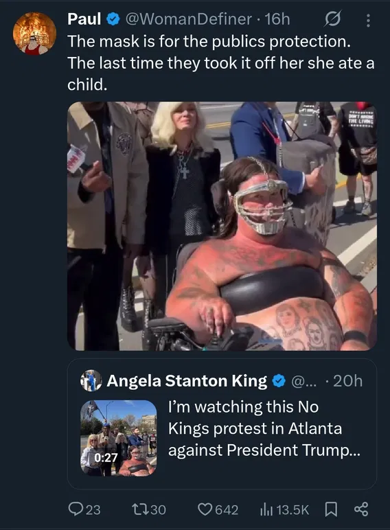 Here in S. Carolina I saw about 4 people gathered. Two “No Kings” printed signs and one US American flag were on display. In other states they carry flags of foreign nations. Finding has been traced to sources outside of the US. Almost all of them are being paid and almost all of them are elderly.