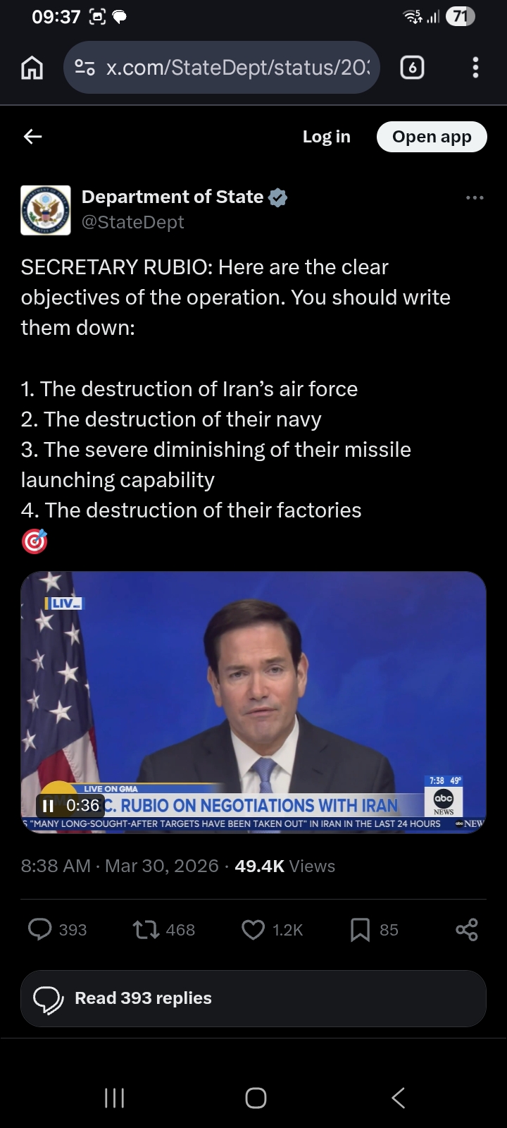 I did not hear Rubio say that forever eliminating Iran’s nuclear weapons program was a primary goal of this operation. That would be a big change. Did I miss something?