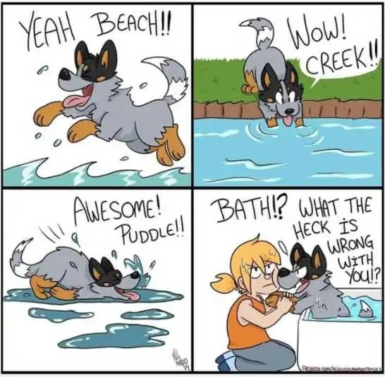 He so loved the water and swimming, we decided to take him on a vacation to the Pacific Ocean. We found a B&B that not only allowed dogs, but catered to them. He had his own dog bed, dog bowl, and was allowed on the patio to eat (and he was allowed to order from the menu!)