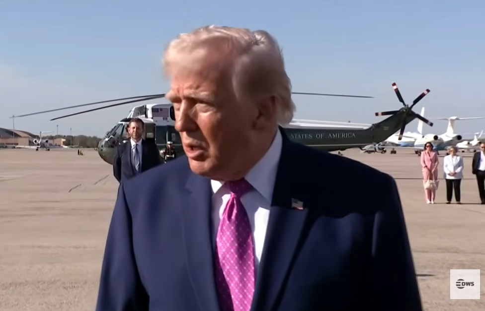 President Donald Trump speaks to reporters at Joint Base Andrews before boarding Air Force One en route to Virginia. President Trump delivered remarks on upcoming US–Iran peace negotiations led by JD Vance in Pakistan. WATCH: