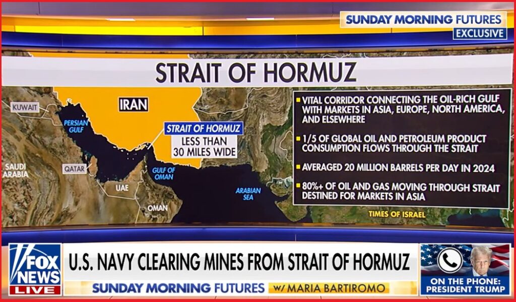President Donald Trump joins Maria Bartiromo on ‘Sunday Morning Futures’ to detail the Strait of Hormuz blockade, warn Iran on nuclear weapons, outline next U.S. military and economic steps after failed peace talks.