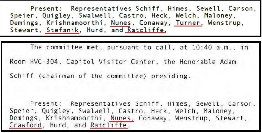 Now, as you can see from the attendance above, John Ratcliffe was present for both Atkinson depositions. Despite his immediate silence, we know John Ratcliffe was concerned about the content within ICIG Atkinson’s statements as he relayed in a series of questions during a public hearing December 9, 2019 {SEE HERE}.