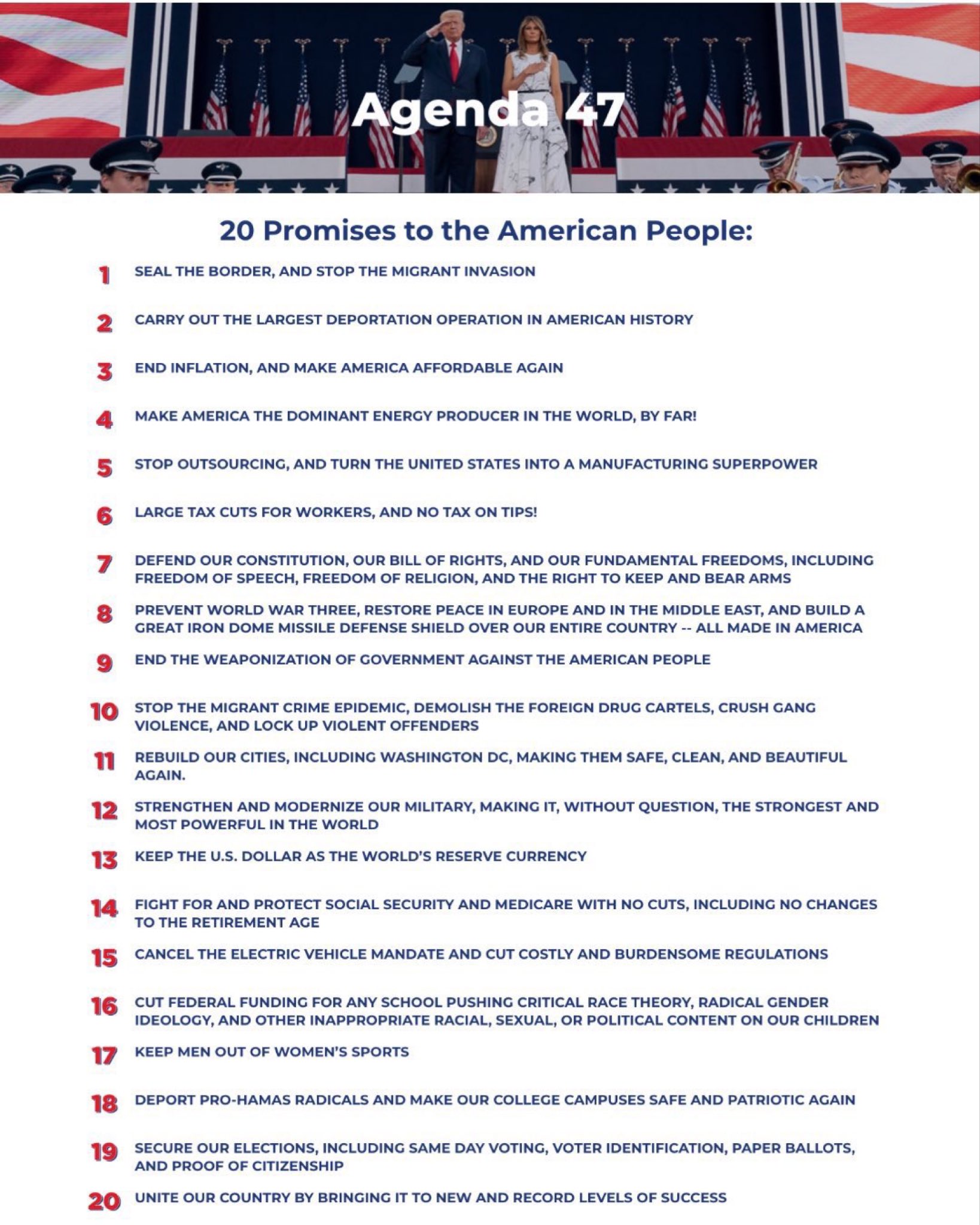The actual website and link is no longer available. But the 20 points of Agenda47 are as outlined above.