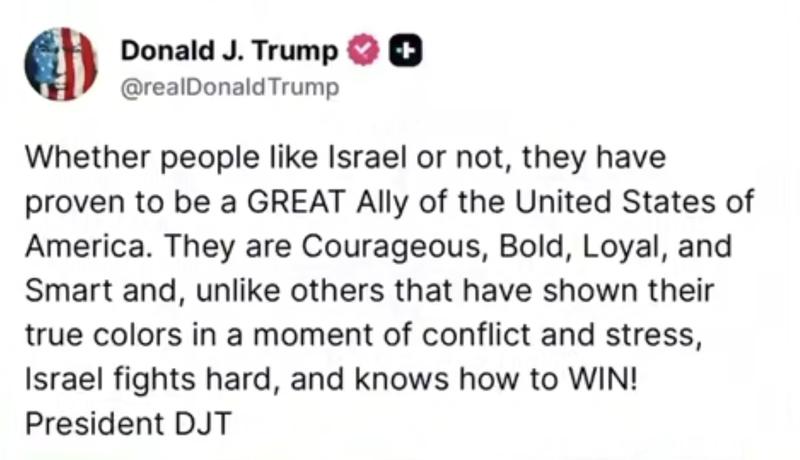 Trump posted the following pro-Israel post and the following video. I will refer to it later. There must be a reason for it in this timing. Note that this must really piss off the antisemites, his heart is in the right place.