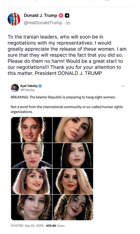 Iran’s lead negotiator Mohammad Bagher Ghalibaf tells Trump that ahead of negotiations, Tehran has spent the past 2 weeks preparing new “cards” on the battlefield