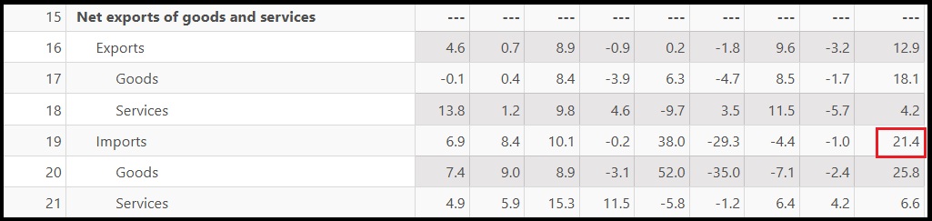 GDP Table 1.1 highlights the jump in imports. (Percent change vs prior quarter):